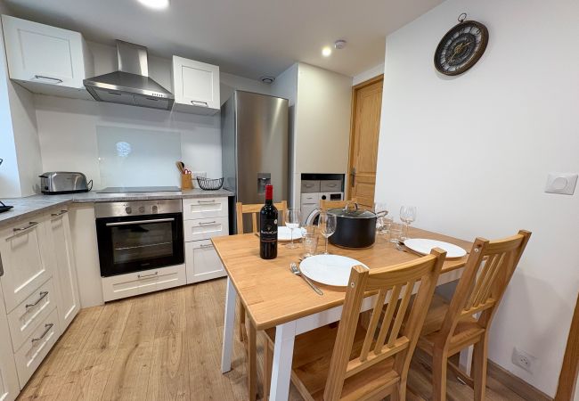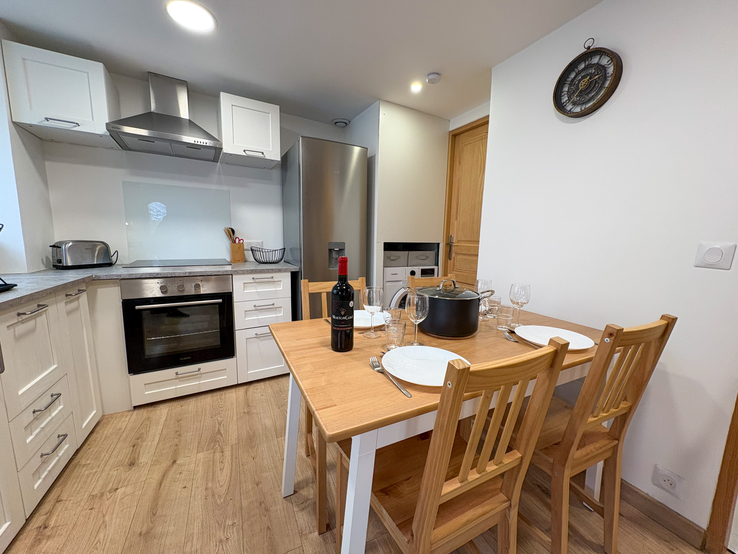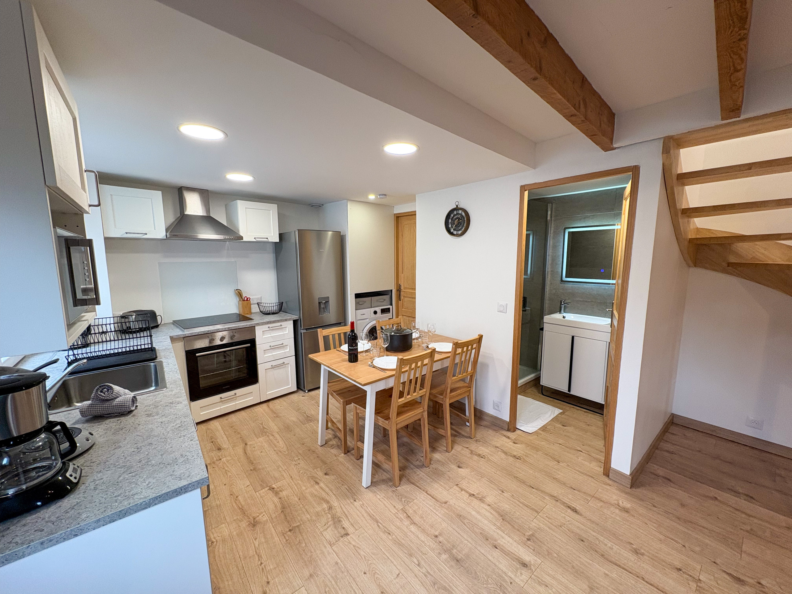 Vous y trouverez un salon confortable, une salle à manger conviviale pour partager de bons moments en famille ou entre amis ainsi qu'une jolie cuisine équipée ouverte sur le séjour.
