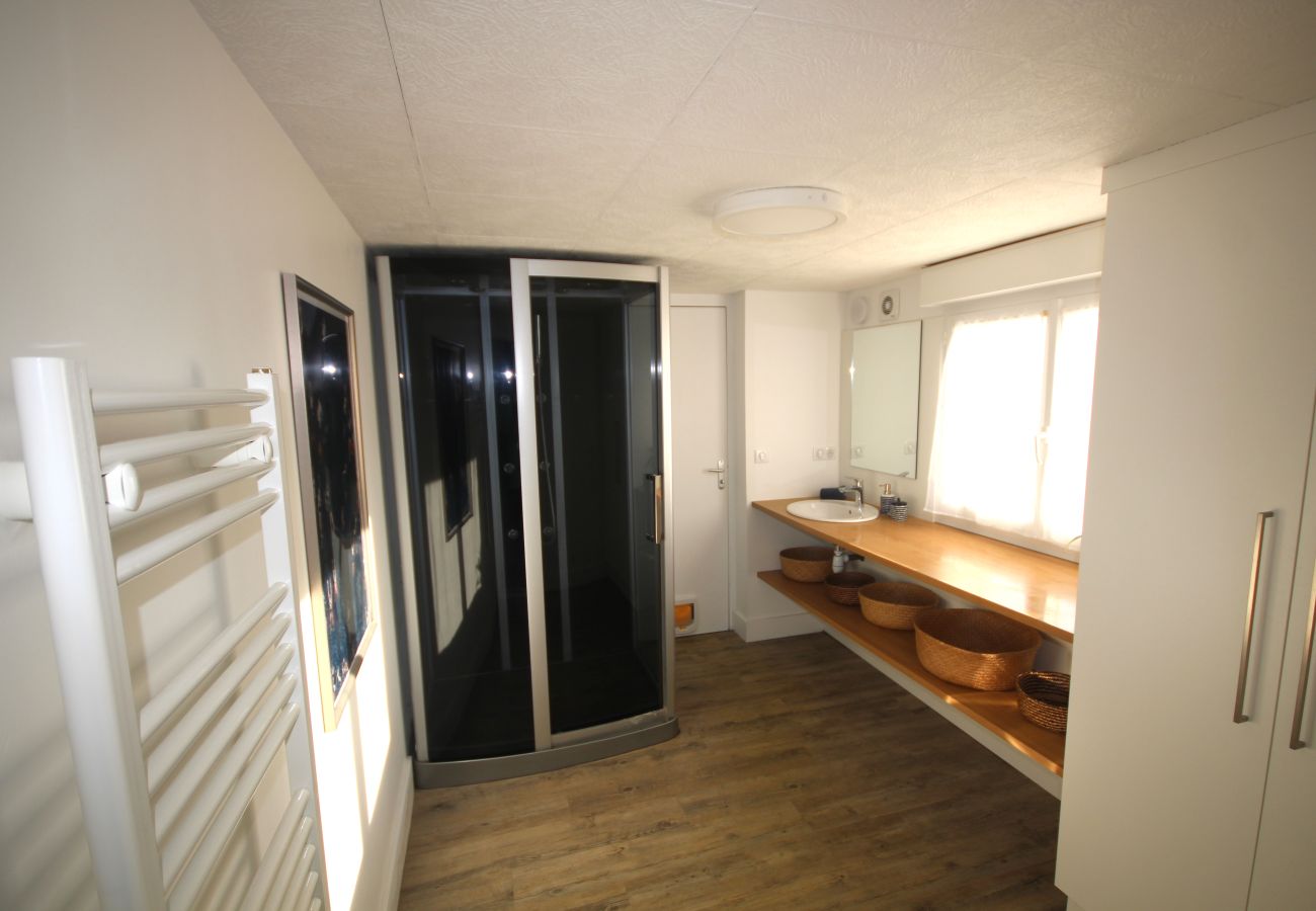 Dans ce gîte spacieux et fonctionnel tout est prévu pour passer d'excellentes journées en famille avec des enfants. Il est situé dans un quartier très calme, avec un jardin clos sans vis à vis et la décoration des pièces est reposante. L'emplacement à 500m de la plage est idéal. Nous recommandons vivement. Nous avons passé une semaine vraiment très agréable.